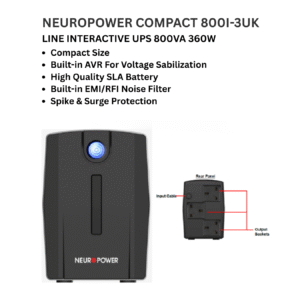 NeuroPower Compact 800i-3UK 800VA 360W Line Interactive UPS AVR Automatic Voltage Stabilizer AVS