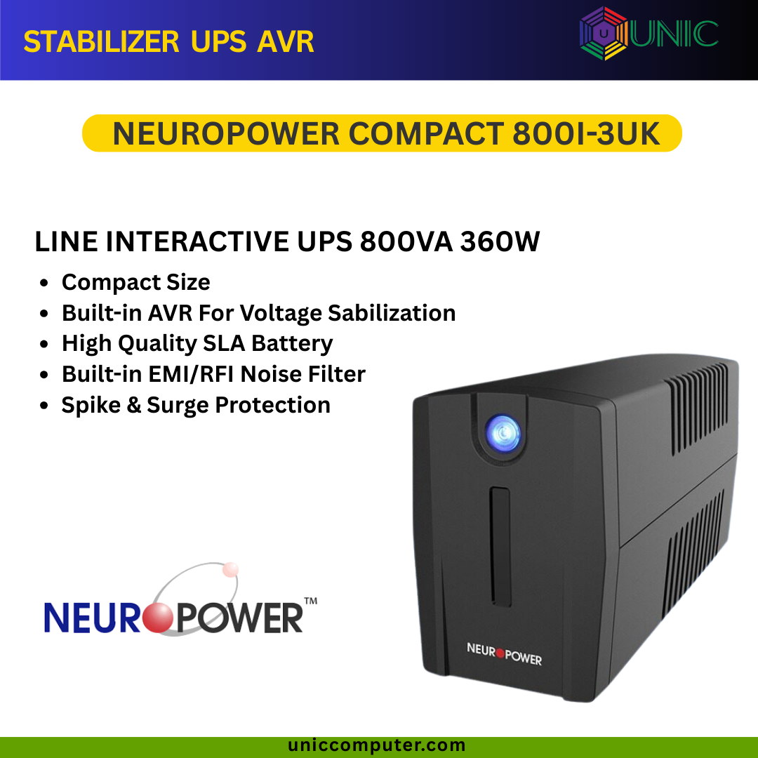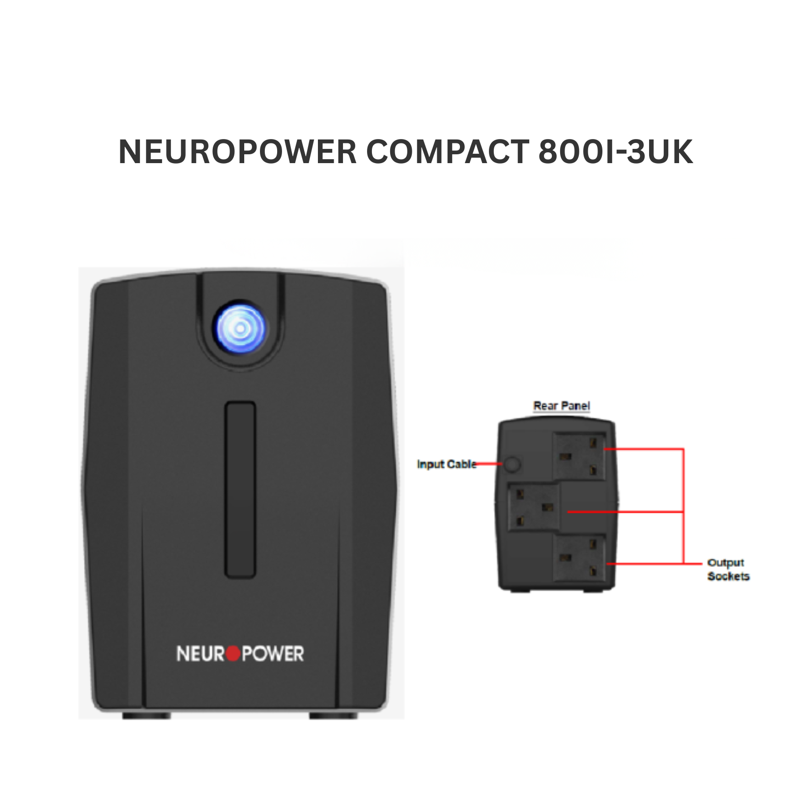 NeuroPower Compact 800i-3UK 800VA 360W Line Interactive UPS AVR Automatic Voltage Stabilizer AVS